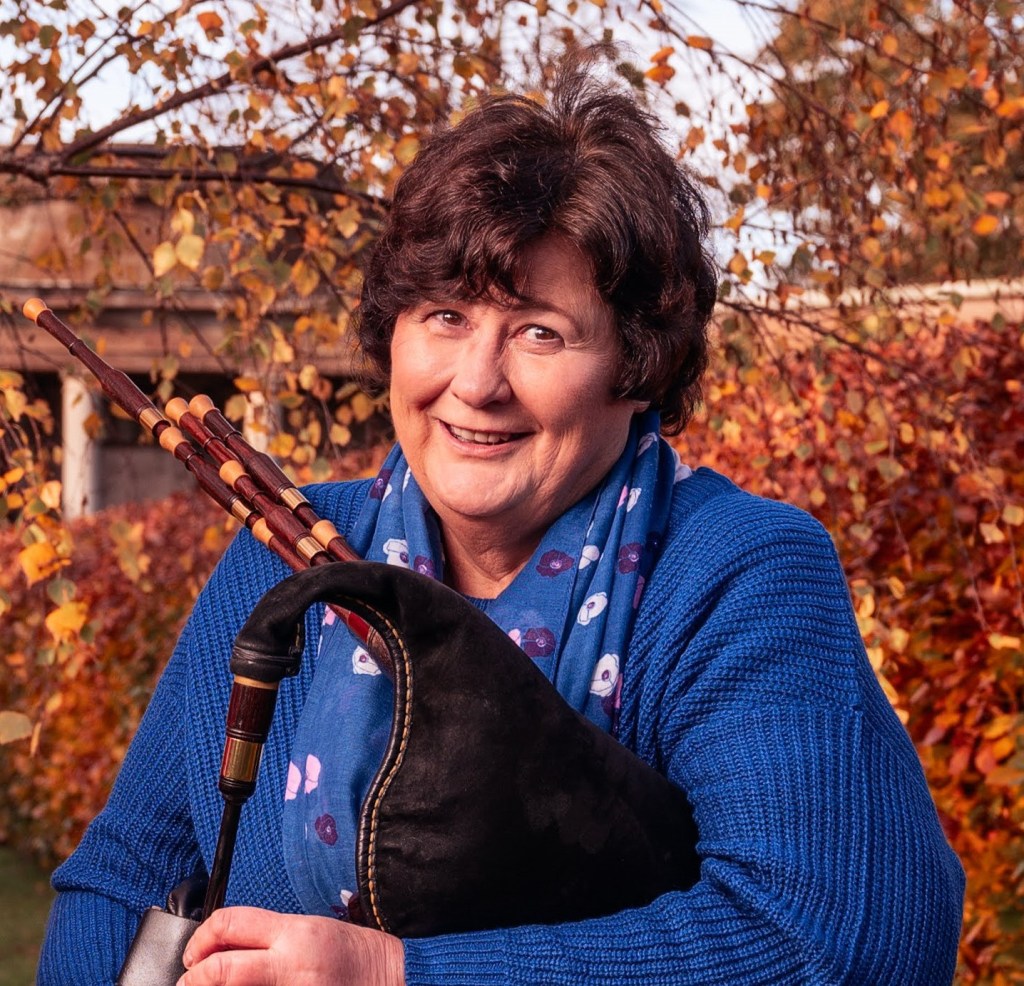 Judy’s experience of singing in choirs made it a natural progression to play harmony accompaniments to the songs she sang with the smallpipes, and was surprised to find that this generated a lot of interest as it was unusual at the time in the Scottish tradition of singing with smallpipes. She took part in the Pipe and Song category of the Lowland and Border Pipers’ Society annual competitions over a number of years, with a positive success rate and was recently asked to talk on the topic of “Singing with the Pipes” at the Society’s 40th Anniversary Celebration Collogue.